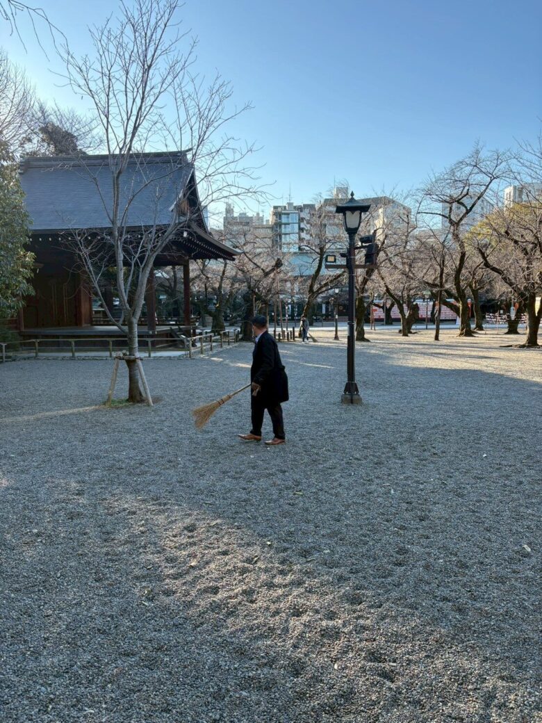 この清掃活動は、靖国神社という歴史的にも重要な場所を守り、その清らかな空間を次世代へと受け継いでいくために行っています。また、清掃を通じて、戦没者への感謝の気持ちを改めて心に刻む機会ともなっています。